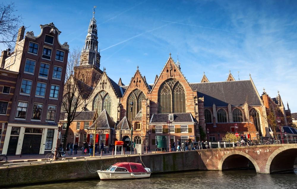The Oude Kerk (The Old Church in English) was built in 1302 and is the city's oldest building. Established at the beginning of the thirteenth century, the chapel was first made of wood. It was then renovated and built of stone. Consecrated in 1306, it has become the city's most important Gothic church. Surprisingly, the Oude Kerk is located in the heart of the Red Light District. The edifice is surrounded by bright red lights and numerous women behind their windows. The contrast of these two elements manifests how liberal, but religious the Dutch population is. The interior of Oude Kerk was stripped of all its decoration in the late sixteenth century after the Alteratie (take over of Amsterdam by the Protestants). Before this date, the Oude Kerk had been a Roman Catholic church. The church was raided on several occasions, destroying most of the temple’s decoration, including paintings and statues. Some of the most beautiful parts of the temple include an enormous vaulted wooden ceiling that still conserves paintings from the fifteenth century, striking intact stained-glass windows, and its four-pipe organ, which stands out compared to the bare decoration.