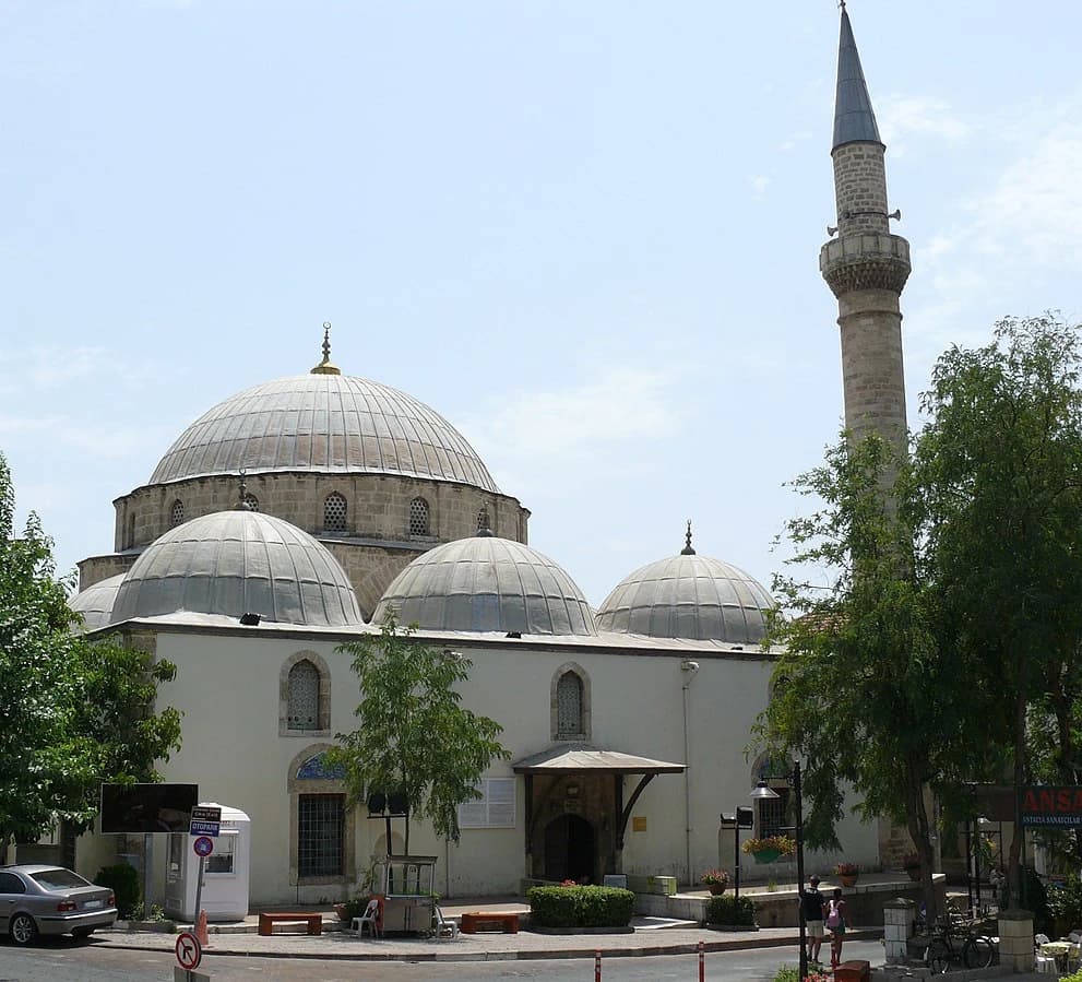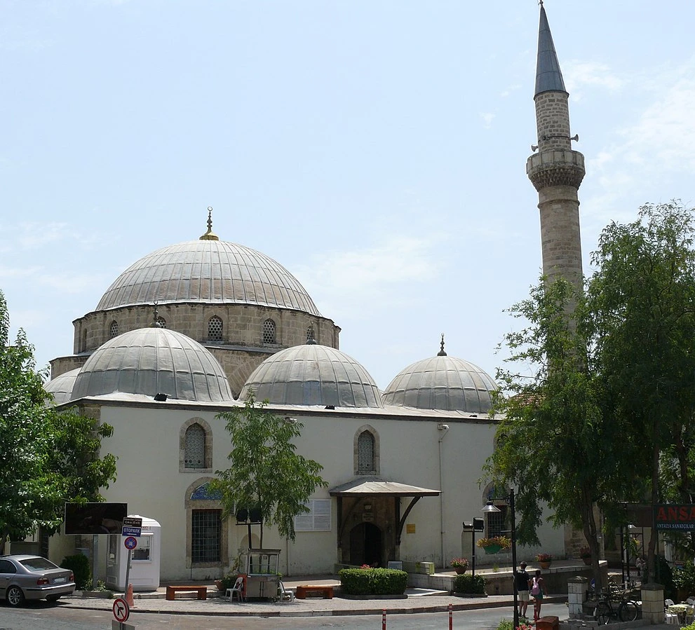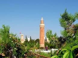 The Alaaddin Mosque, named after its builder but better known by its name Yivli Minare Mosque, is an Islamic place of worship in the center of the old city of Antalya. The mosque is famous for its minaret which was constructed on the orders of Alaaddin Keykubad I, the Seljuks Sultan who ruled between 1220 and 1237. The 38-meter high fluted minaret stands on a huge square stone base measuring 6.5 meters tall and 5.5 meters wide. The Minaret’s eight semi-circular grooved red brick shaft was originally decorated with dark blue and turquoise-colored tiles. The mosque itself has six domes resting on arches, which in turn are supported by 12 columns. The columns are recycled remains of ancient Roman structures. The mosque is one of the oldest multi-domed buildings in Anatolia. Besides the famous minaret and mosque, the Yivli Minaret complex includes other notable structures, such as a madrasa and a building once used as a lodge for the Mevlevi Dervishes. Two domed tombs are also located on the grounds: the tomb of Zincirkıran Mehmet Bey was built in 1377, and another was built in 1502 as a memorial for Ayşe Hatun who was the consort of Sultan Bayezid II, and mother of the next sultan Selim I. A former Islamic seminary, Atabey Aramgan Medresseh has been restored to function as a bazaar.