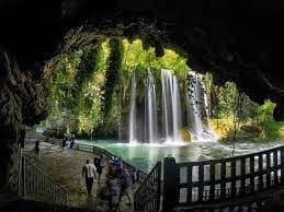 The Duden Waterfalls are one of the most visited sights around Antalya city center. Duden Waterfalls is a group of waterfalls, there are Upper Duden Waterfall and Lower Duden Waterfall, that are actually two separate natural attractions within the City of Antalya. The Upper Duden Waterfall is a series of small cascades, located in a beautiful national park Duden at a distance of 12 km from the Antalya city center. Upper Duden Waterfall is also called "Alexander Falls". It's said that Alexander the Great, who conquered Pamphylia between 334-333 BC, gave water to his horses while passing through this region. When visiting the upper falls within the park, don't miss climbing down a spiral staircase that leads into a cave behind the waterfalls. This experience affords fabulous views through a curtain of falling water.