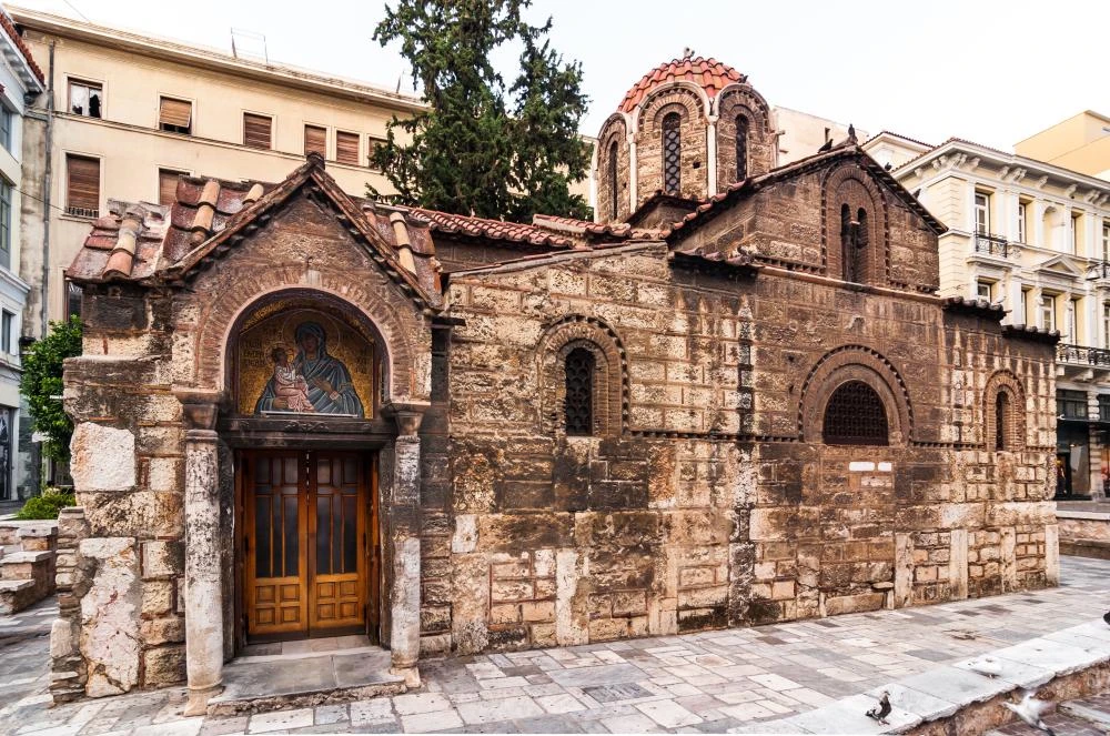 Panagia Kapnikarea is an 11th-century church dedicated to Panagia and is situated in the middle of the busy Ermou shopping strip, on the way from Syntagma to Monastiraki square. The church is dedicated to Panagia and has a unique name “Kapnikarea” which may refer to the Byzantine tax “kapnikon” or some say it derives from the word “kapnismeni” which in Greek means “smoked”, due to the marks of fire that are seen on the building. The church is filled with a rich history and during the Greek Independence War, it was damaged, like most other monuments in Athens. In 1834, the year of the construction of Ermou Street, authorities had planned to demolish the church. This was during the reign of King Otto, as it was not included in the urban designs of his architect, Leo von Klenze but it was saved after the intervention of the King of Bavaria, Ludwig. Today, the church belongs to the University of Athens and continues to stand out as a unique part of the city’s history, attracting thousands of locals and tourists who walk inside each day to light a candle, say a prayer and look around this sacred site.