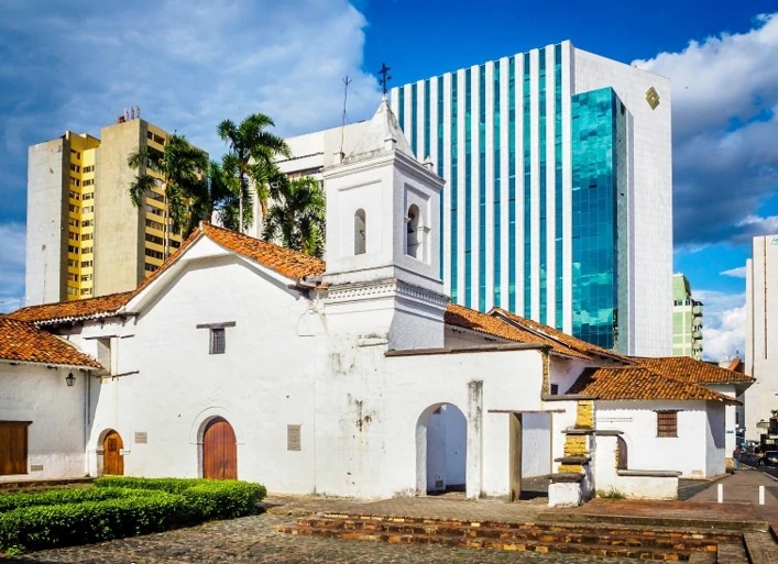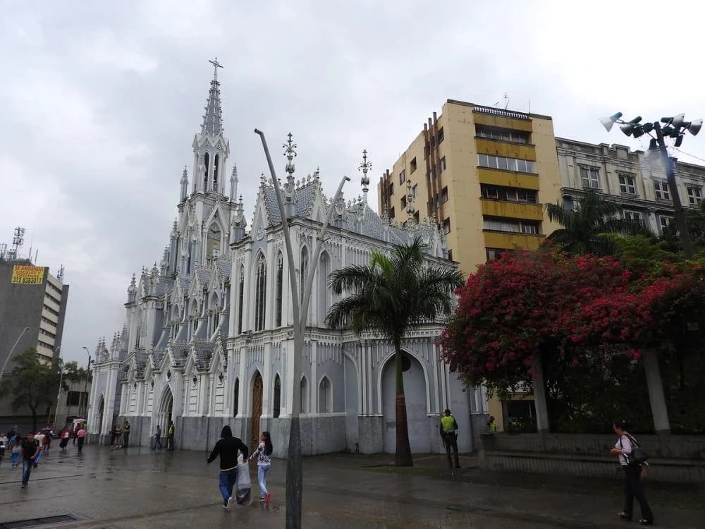 A postcard of Cali is the church of La Ermita, recognized for its Gothic style. This temple was built between 1930 and 1948, and its marble altar stands out, which was brought from Italy and dates from the 18th century. The musical clock and the stained-glass windows come from Amsterdam (Holland), while the iron doors were made in Cali in 1973.