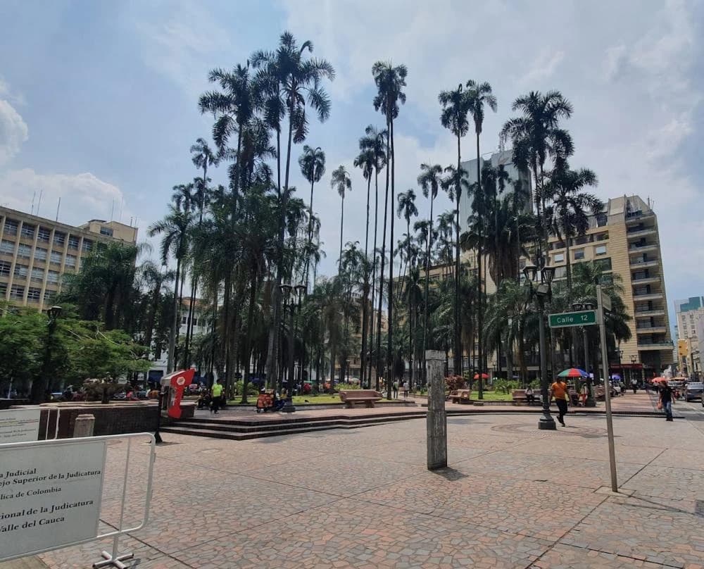 This is the main square in Cali. It is surrounded by government buildings, churches, and shops.