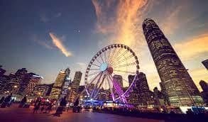 The Hong Kong Observation Wheel (abbr. HKOW) is a 60-metre (197-foot) tall Ferris wheel located at the Central Harbourfront, Central, Hong Kong.It has 42 gondolas, including one VIP Gondola with leather seats and a clear glass bottom floor. All gondolas are equipped with air conditioners and communication systems. Each ride includes two to three rotations and takes about 15 minutes. Each gondola seats a maximum of eight people, other than the VIP Gondola, which seats five people.