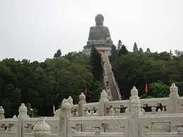 The Big Buddha is a large bronze statue of Buddha, completed in 1993, and located at Ngong Ping, Lantau Island, in Hong Kong. The statue is sited near Po Lin Monastery and symbolises the harmonious relationship between man and nature, people and faith. It is a major centre of Buddhism in Hong Kong, and is also a tourist attraction.