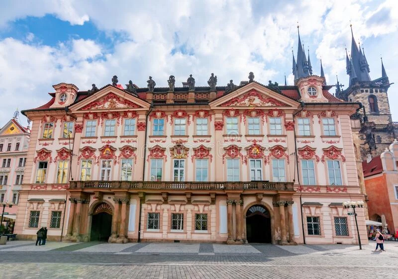 A pink-and-white Rococo manor in the middle of Old Town Square, Kinsky Palace — is one of Prague’s most famous buildings. Once the home of a noble count, the ornate structure is linked to a pair of prized Czech writers. The official name of the Kinsky Palace Prague is the Goltz Kinsky Palace. Since 1949, The Prague Kinsky Palace has been operated by the National Gallery. It is now known as the Kinsky Palace national gallery. Occult enthusiasts may want to watch themselves when around Kinsky Palace, though. Legend has it that the Palace builders made a Faustian bargain to get the job done, and now the site is haunted. History buffs should check out the balcony. It’s where Klement Gottwald announced the beginning of the communist era in 1948, which lasted 42 years. Though the House of Kinsky owned the Goltz Kinsky Palace in Prague through World War II, the family leased sections to merchants and organizations. Hermann Kafka operated a hat shop on the ground floor, and Franz — Herman’s son and now-celebrated author — went to secondary school in the palace between 1893 and 1901. During the Interwar period, even the Republic of Poland’s legation occupied a wing. In 1945, the government took possession of the property and made it a museum, which it remains today.
