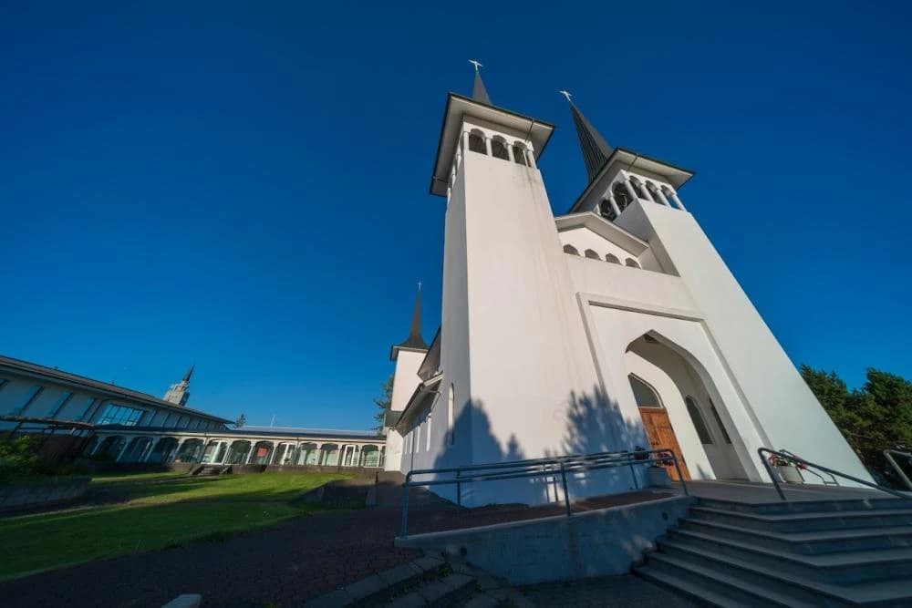 Hateigskirkja is a local Reykjavik church, which is part of the state church. It has a very beautiful white color that makes it especially solemn during winter, when there is white snow around. It has two tall spires and two shorter spires. You can see beautiful religious pictures inside the church.