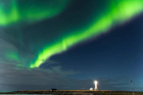 Accessible during low tide, this islet lighthouse is a popular spot for viewing the northern lights.