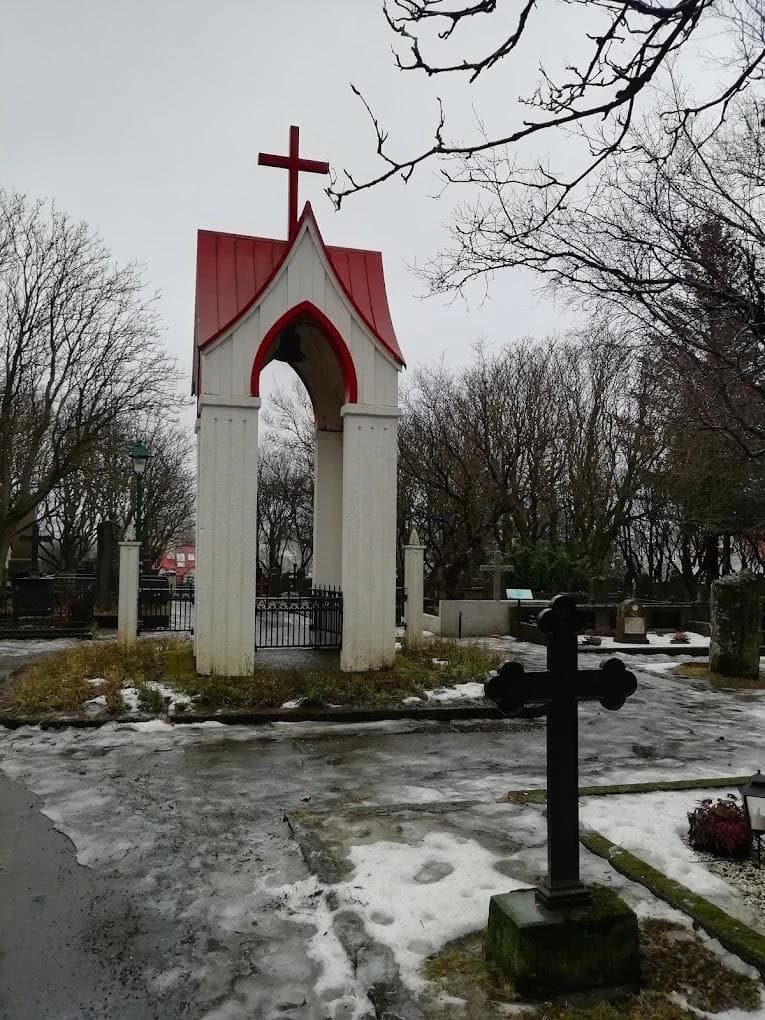 IN THE LATE AFTERNOON SUMMER sunshine, Hólavallagarður is one of the most magical places in a country filled with them. Mossy, narrow paths weave among the graveyard as dappled light falling through the trees illuminates lichen-covered gravestones. And on a cloudy, rainy autumn day, Holavallagarour is gray, mysterious, and even ominous.