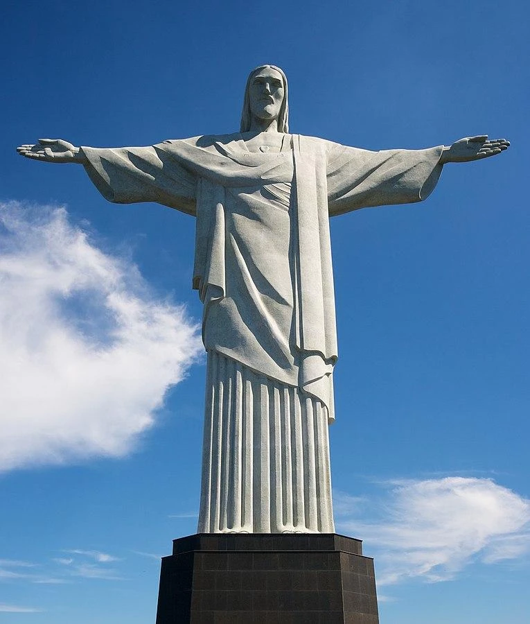 Christ the Redeemer (Portuguese: Cristo Redentor, standard Brazilian Portuguese: [ˈkɾistu ʁedẽˈtoʁ], local pronunciation: [ˈkɾiɕtŭ̥ xe̞dẽˈtoɦ]) is an Art Deco statue of Jesus Christ in Rio de Janeiro, Brazil, created by French sculptor Paul Landowski and built by Brazilian engineer Heitor da Silva Costa, in collaboration with French engineer Albert Caquot. Romanian sculptor Gheorghe Leonida sculpted the face. Constructed between 1922 and 1931, the statue is 30 metres (98 ft) high, excluding its 8-metre (26 ft) pedestal. The arms stretch 28 metres (92 ft) wide.[1][2] It is made of reinforced concrete and soapstone. Christ the Redeemer differs considerably from its original design, as the initial plan was a large Christ with a globe in one hand and a cross in the other. Although the project organisers originally accepted the design, it later changed to the statue of today, with the arms spread out wide. The statue weighs 635 metric tons (625 long, 700 short tons), and is located at the peak of the 700-metre (2,300 ft) Corcovado mountain in the Tijuca National Park overlooking the city of Rio de Janeiro. A symbol of Christianity around the world, the statue has also become a cultural icon of both Rio de Janeiro and Brazil and was voted one of the New Seven Wonders of the World.