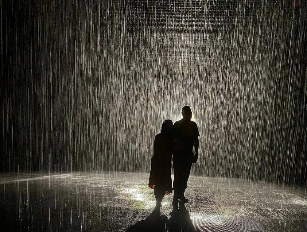 The Rainy Room is a 2012 experimental artwork by Hans Koch and Florian Ortkras of Random International, which became his first permanent installation in Sharjah, United Arab Emirates in 2018. The work has previously been shown at a number of international art venues, including the Museum of New York Modern Art (MoMA) and London Barbican. The rain room allows its visitors to walk through a downpour without getting wet.