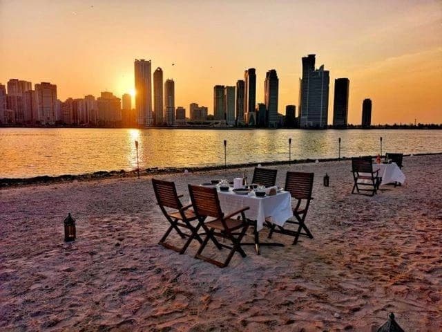 It is one of the most beautiful beaches of Sharjah, ideal for relaxation, wandering, and practicing walking or jogging. The beach extends from the Buhaira Corniche to Ajman Beach and is distinguished by its clear and calm turquoise waters and small boats scattered along its banks with palm trees, green spaces, and wooden benches that extend along its quay.