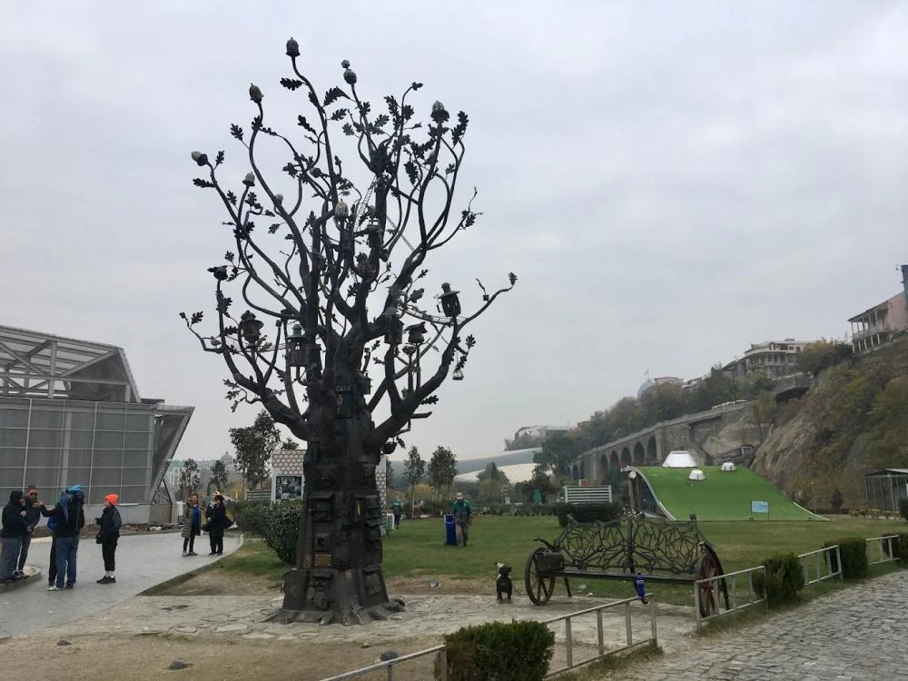 A 9-meter-high metal oak tree, installed on City Day (in May) in European Square, near the entrance to Rike Park in 2016. It is close to the lower cable car station. The idea is to translate the metaphysics of the ancient city, and to embody the history of Tbilisi and the whole of Georgia (sculptor David Monavarlisashvili).