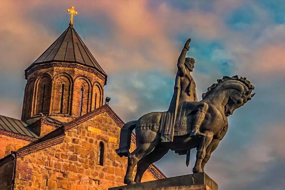 This monument to King Vakhtang Gorgasali is one of the most famous landmarks in the city, as this king is attributed to the founding of the city of Tbilisi. The true date of this foundation is not known, but scholars estimate that it was in the years between 447-522. Many legends are associated with this king, including that the city's hot springs fascinated him and founded the city around it. Vakhtang also reorganized the Georgian Orthodox Church, and therefore was canonized by the church.