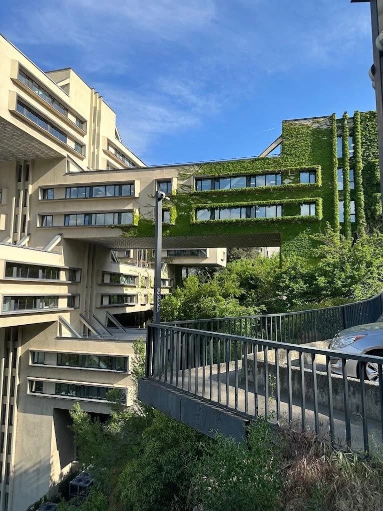 Striking, riverside glass building topped by 11 white “petals,” home to government offices & a cafe.