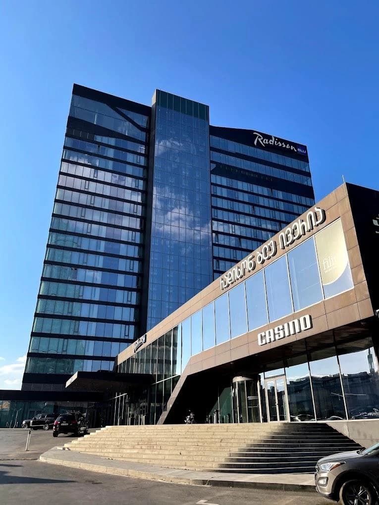 This casino is split over two floors with a slot machine room adjacent to the entrance that is open to all comers: the casino proper is upstairs. Registration is required but can be done on production of a passport. The main floor has roulette and card tables for a variety of games including Punto Banco, Black Jack and various incarnations of poker. Adjacent is a restaurant with views over the river, serving a mixed menu of Georgian and international dishes. There is also an exclusive, XO Room for the use of specially invited players only. There are three bars and table service. Special evenings with live music and prizes every Saturday.