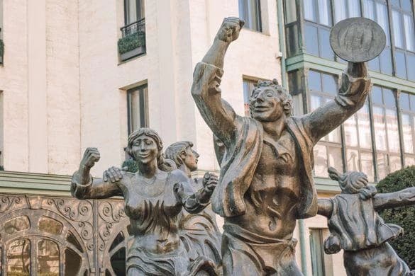 The Berikaoba Sculpture Group is a very cheerful, cheerful small sculpture dedicated to the masquerade performance of Berikaoba. The monument was erected back in 1981 and has long pleased tourists and residents of the city with its appearance. The six figures of the monuments are fervently spinning in a crazy fast dance, and there is a gap between the figures so that everyone can get into this round dance and feel part of it. Cheerful dancing figures happily see off winter and prepare for the meeting of spring.